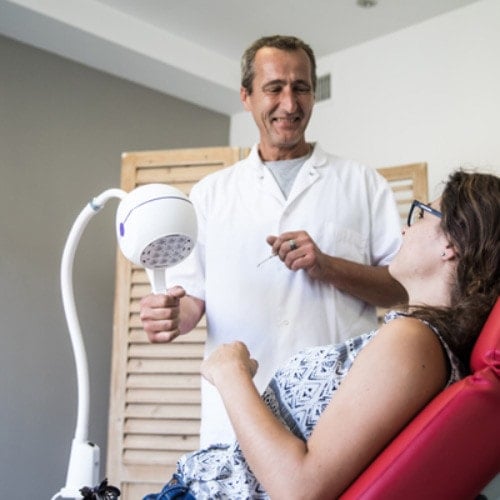 The LED treatment light «Bella» is available both with a wall mount bracket and wheeled stand.