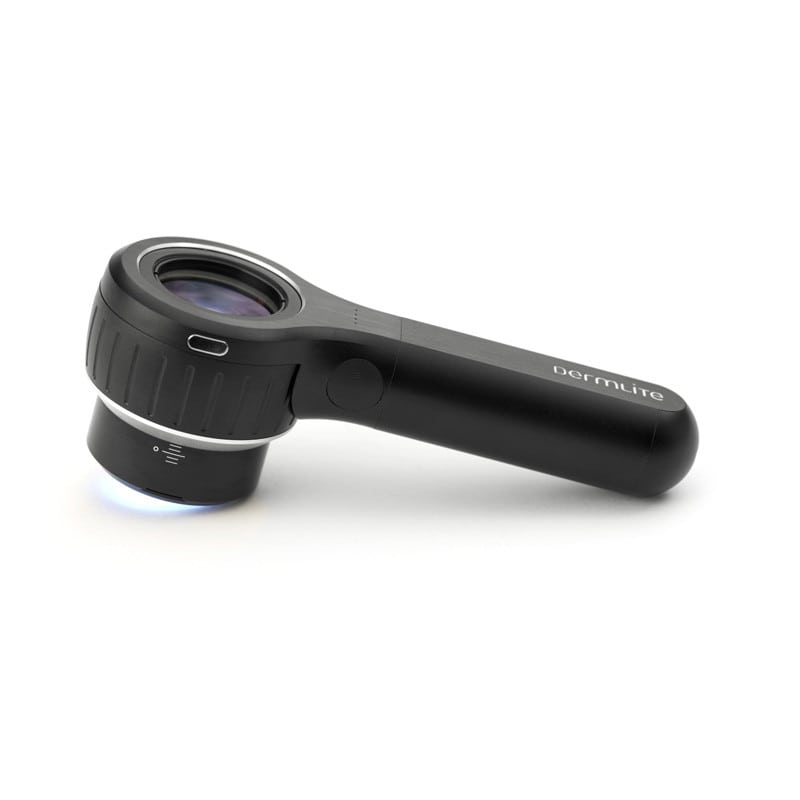 The DermLite DL4 dermatoscope from 3Gen is a compact pocket dermatoscope equipped with a 30 mm lens system and 10x magnification. The dermatoscope offers both cross-polarised and non-polarised light, as well as Pigment Boost Plus mode, which allows you to view deeper skin structures. As a result, the DL4 can be used for classic dermatoscopy with immersion fluid, as well as for contact-free dermatoscopy. With help of a separately available adapter, the DL4 can be connected to cameras and smartphones to document the examination.