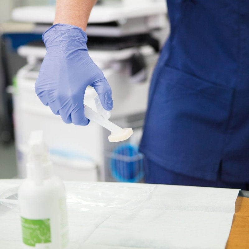 The polymer cyanoacrylic solution in the disposable applicator only needs to be applied twice a week, dries quickly and does not need to be washed off before reapplication. The skin protection film adapts optimally to the movements of the skin, so that treatment is particularly pleasant for the patient. As it is a hygienic disposable item, 3M™ Cavilon™ Advanced carries a low risk of cross-infection.