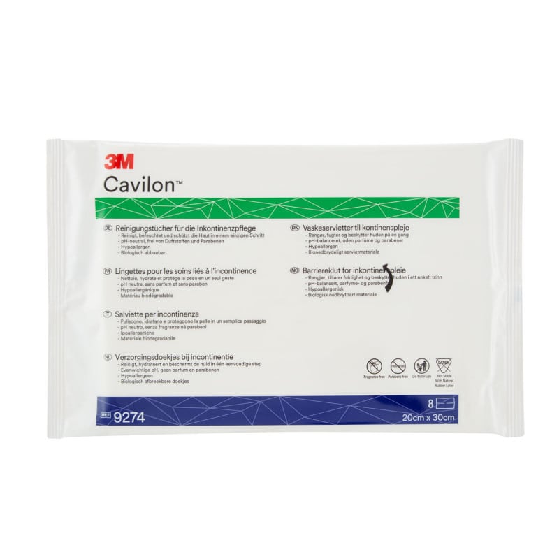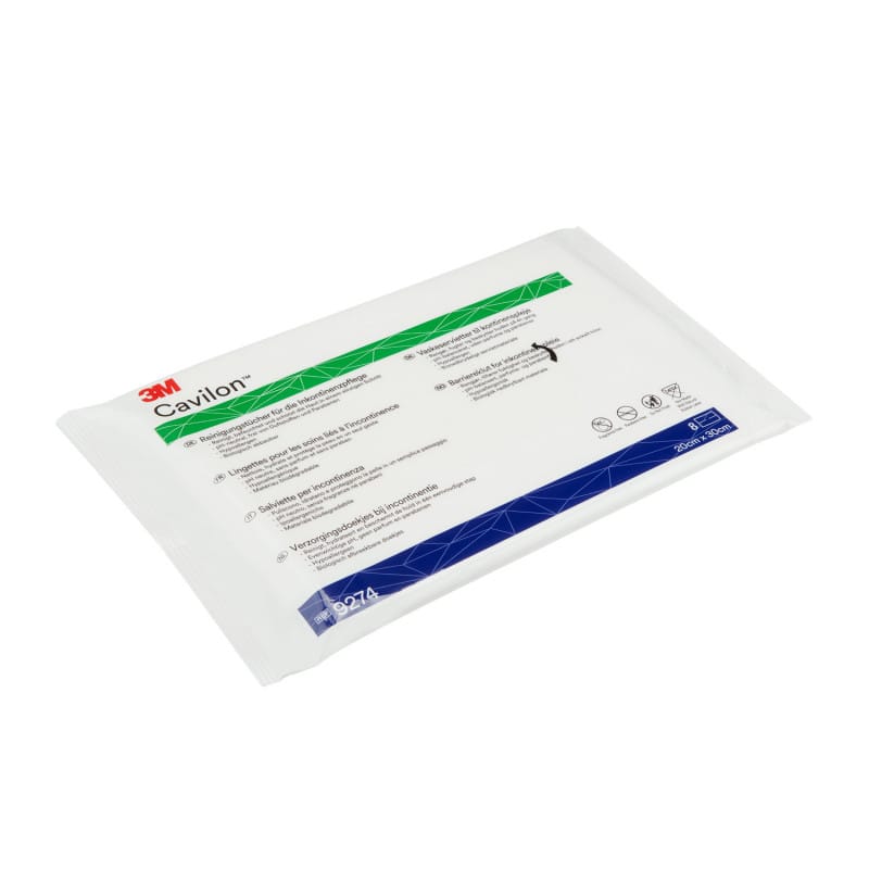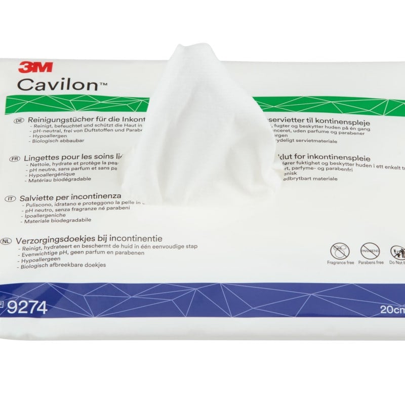 The pH-neutral and moisturising 3M™ Cavilon™ wipes are designed for use in incontinence care and enable gentle washing and care of patients. Thanks to the colourless and transparent dimethicone, an effective barrier against moisture and body fluids is formed when using the medical cleansing wipe. Therefore, 3M™ Cavilon™ wet wipes are excellent for the prevention of incontinence-associated dermatitis.