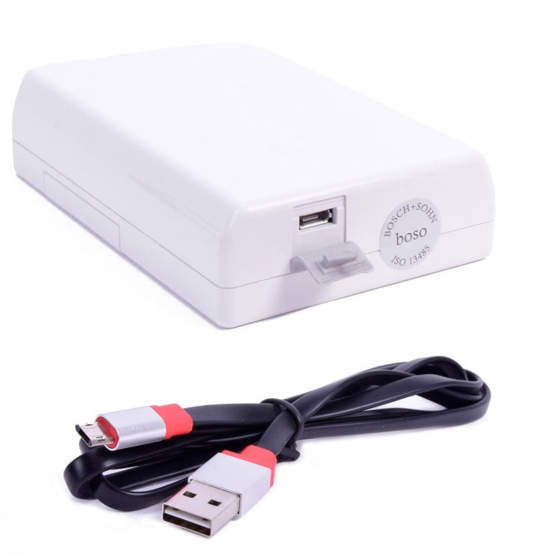 | 24 h Blood Pressure Monitor incl. cBP upgrade, complete accessories and software | 1 boso Tm 2450 cBP 24h blood pressure monitor 1 Evaluation software for Windows operating systems (Boso profil-manager XD) 1 USB power cable 1 Battery charger 2 Battery sets (corresponds to 4 batteries) 1 Hip bag with strap 1 Cuff for arm circumferences from 20 - 31 cm 1 Cuff for arm circumferences from 28 - 38 cm |