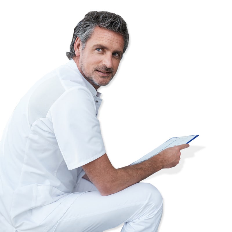 This men's tunic from Bierbaum-Proenen has an armlift system and flexible, elastic shoulder inserts in the back for optimal freedom of movement. The inner-collar of this tunic is silvery, which provides protection from discolourations. Both spacious side pockets offer ample space for diagnostic instruments, writing utensils and notes.
