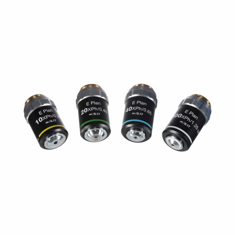 As time-consuming staining of specimens can be omitted, valuable time is saved in the laboratory. The phase contrast condenser with four phase apertures and planachromatic objectives (10x, 20x, 40x, 100x oil) ensures crisp and detailed images when used in conjunction with the infinitely corrected optics of the BRESSER Science Infinity microscope. The set also includes a collimating eyepiece, adjustment screws, and a green colour filter for further optimisation of image quality.