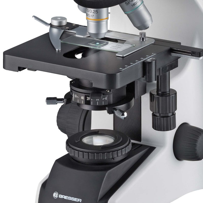 The Bresser Science TFM-201 Microscope is a high-quality binocular microscope for use in research as well as the medical laboratory. The microscope is equipped with four semiplan objectives. The WF 10x eyepieces provide a 20mm field of vision provide a large field of vision for comfortable use. Moreover, the two eyepieces are equipped with a dioptre compensation.