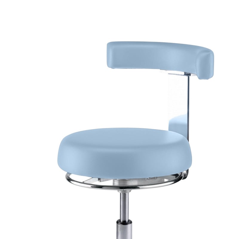 The versatile CDS 301 task chair by EURONDA is equipped with an ergonomic and 360° rotatable backrest and can be manually adjusted in height and horizontal position as needed. In addition, it is equipped with 5 self-locking and smooth-running swivel castors, which promote the flexible mobility of the treatment stool.