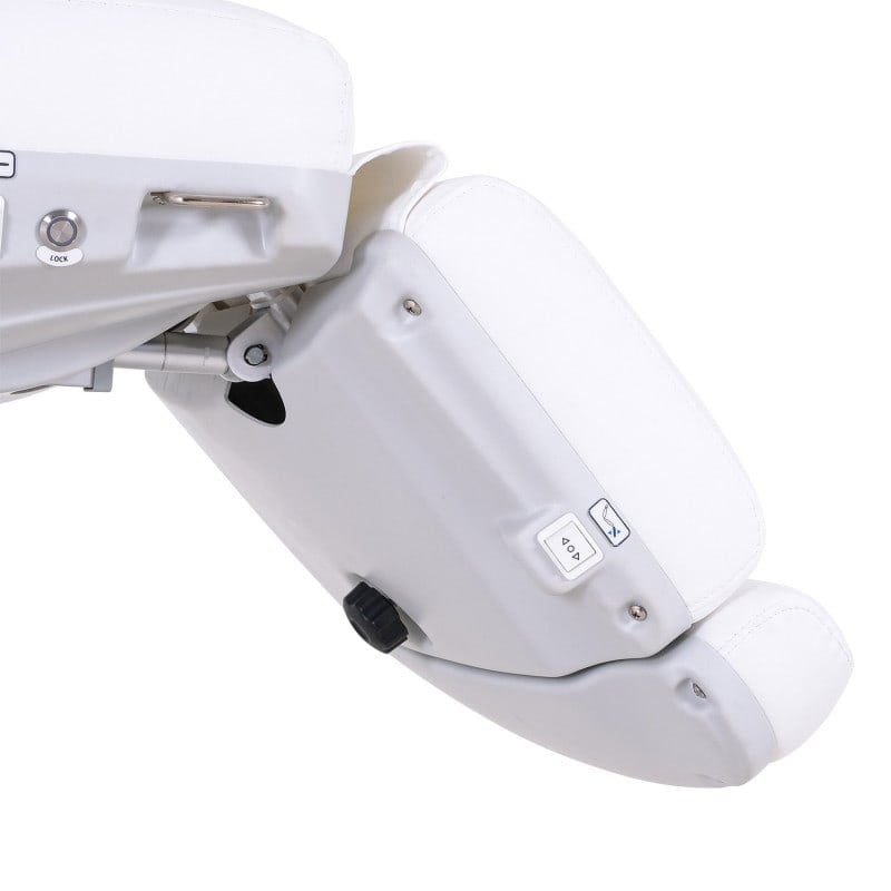 The Cloud Beauty Bed from Beautek is perfect for cosmetic treatments due to its exceptional accessibility and flexibility. It can achieve 240° rotation and offers extensive height adjustments, ensuring ergonomic operation along with a low access height. Both the head section, featuring a removable pillow attachment for when face hole is not in use, and the foot section, adjustable up to 90°, can be extended as needed. Enhancing treatment comfort, this table includes pleasant seat and backrest heating. The table's positioning can be fine-tuned using different control panels on the table housing and via a remote control, allowing for optimised treatment experiences.