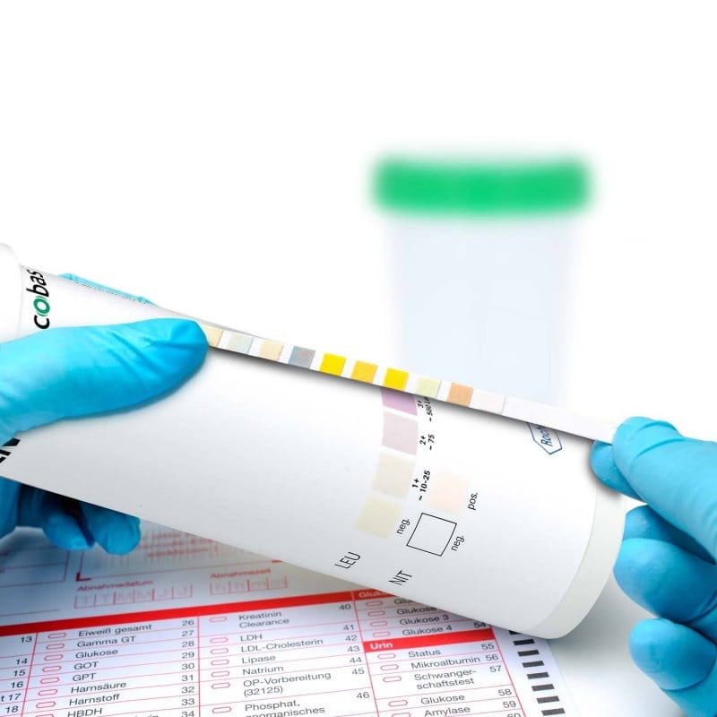 - Reliable diagnosis: Even minor pathological changes in urine result in clear colour changes on the test pad. For this reason, a urine analysis with Combur 2 urine test strips in a hospital and surgery environment constitutes the first step towards a reliable diagnosis.