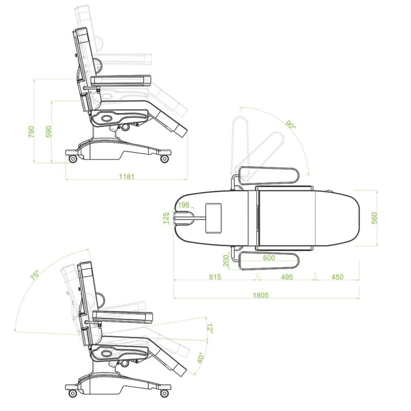 The electric blood drawing chair "COMFYSIT" can be adjusted in many ways and can thus be individually adapted to the needs of the patient. Treatment in a sitting position as well as a flat and Trendelenburg position is possible.