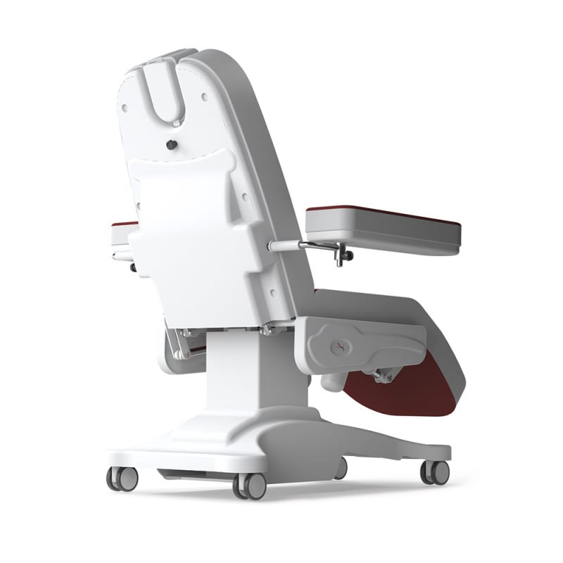 Thanks to the comfortable upholstery and a height-adjustable neck cushion, the chair offers a high level of sitting and reclining comfort and is excellent for blood collection and blood donation as well as for longer treatments, such as transfusions, dialyses or minor surgical procedures.
