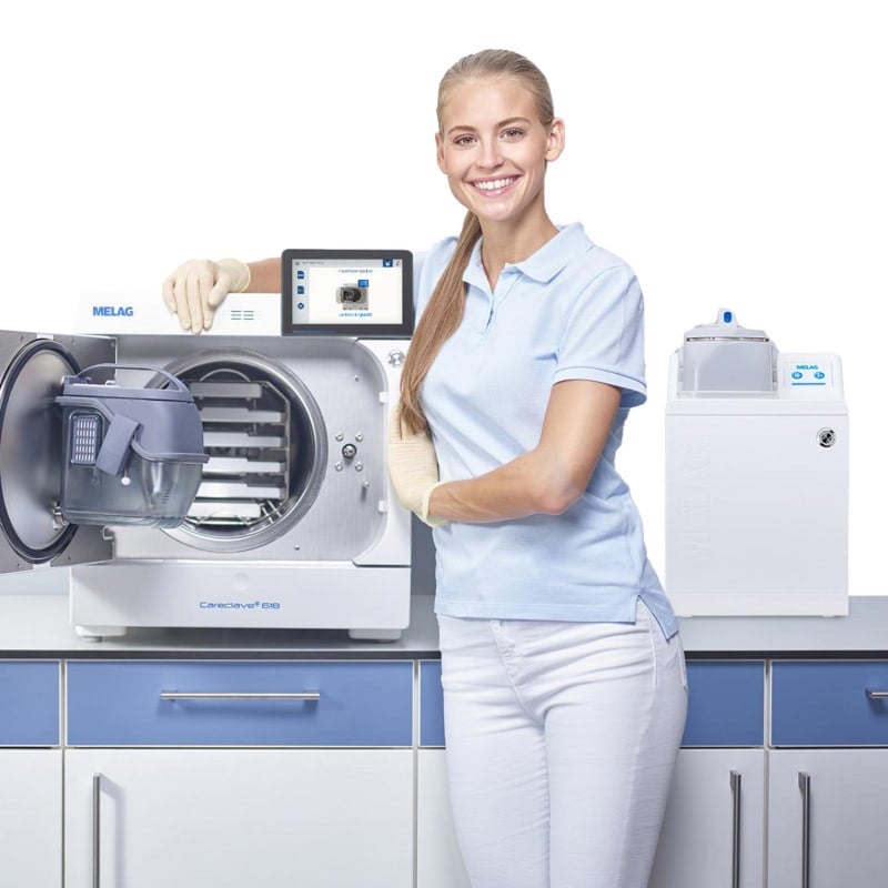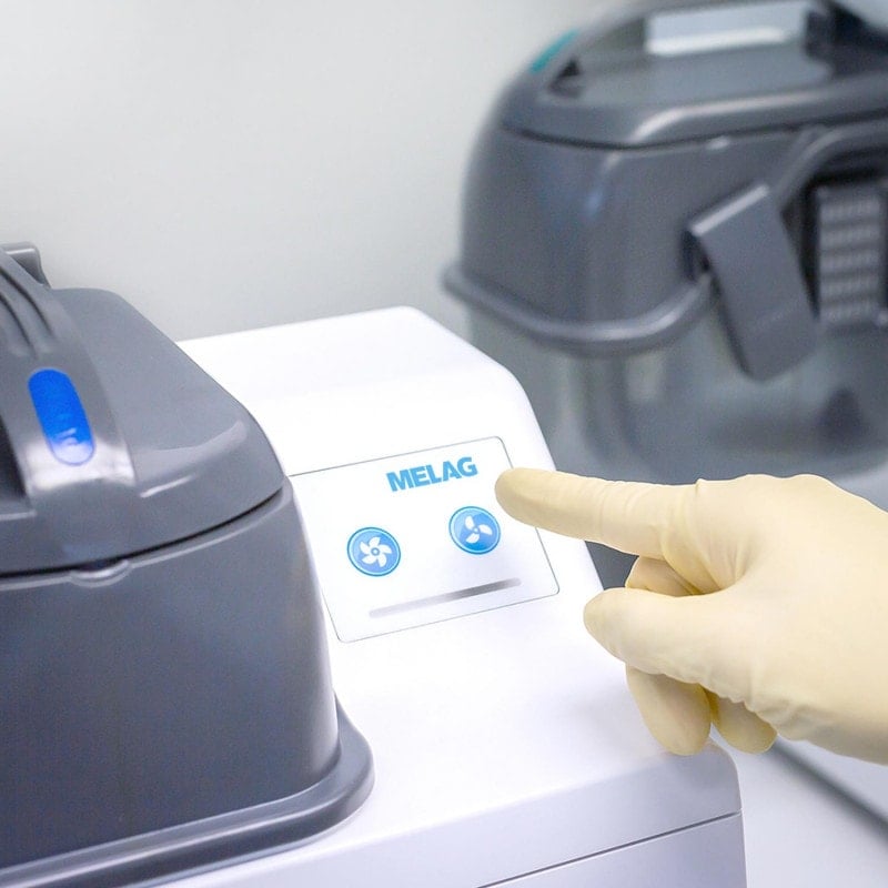 The compact Cooling Box from Melag is the perfect complement for the Carebox and allows the instruments in the Carebox to cool down within 4 minutes. There is a choice of a TURBO and an ECO programme, which can be started simply by pressing a button.