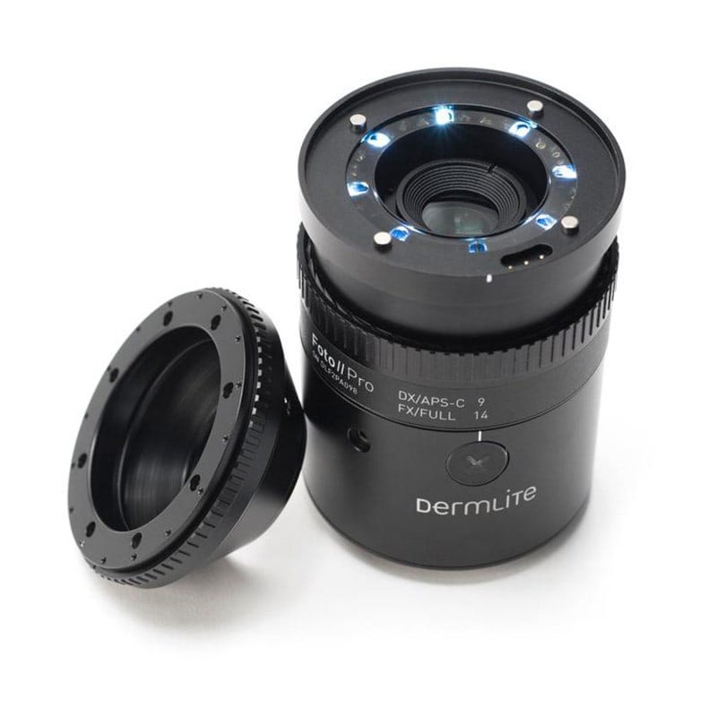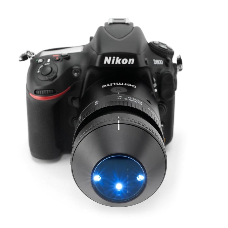 The DermLite Foto II Pro dermatoscopy lens is available with or without Nikon D500.