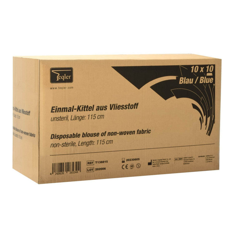 The non-sterile, single-use gowns are equipped with ties that can be closed at the neck and back, while the soft, non-woven material and the elastic cuffs offer additional wearing comfort.