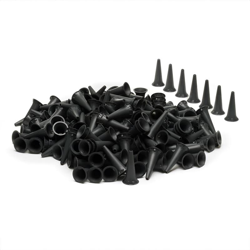 Disposable ear specula for use with otoscopes from various manufacturers. In practice, the use of disposable ear specula is popular because the reprocessing of used continuous-use ear specula is no longer necessary, which saves time and money. The ear specula are supplied in the practical box with 250 pieces.