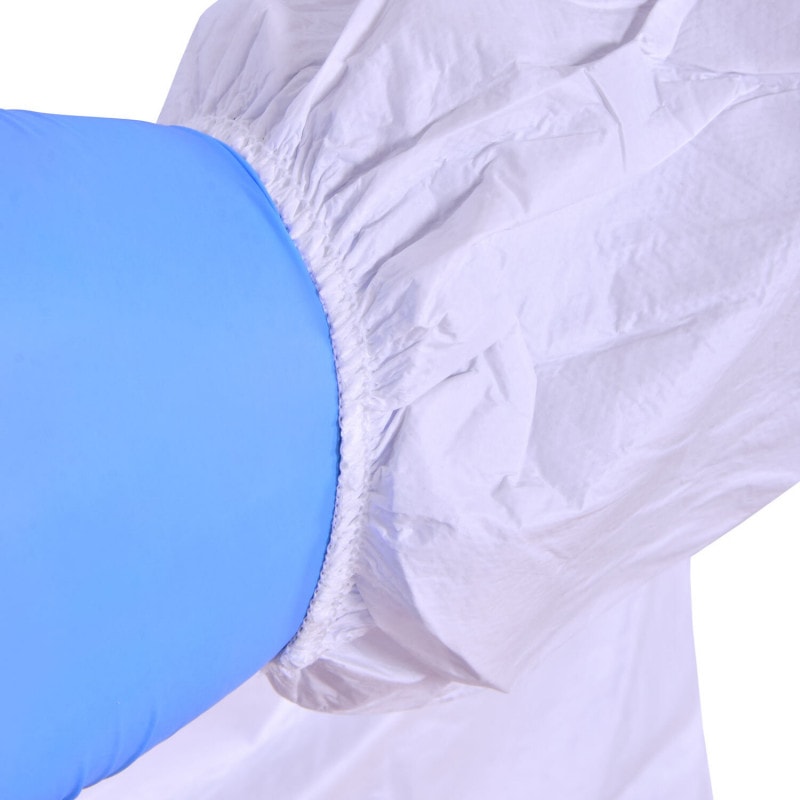 The protective overall is equipped with tight fitting elastic cuffs on the arms and legs, a hood with elastic band and spray-resistant seams. With a density of 55g/m2, the material offers reliable protection against liquid chemicals, infectious agents and electrostatic discharge.