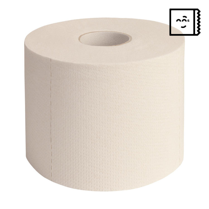 The eco-friendly toilet paper from Green Hygiene is a small 3-ply roll. It comes with 36 rolls of 400 sheets each. Thanks to innovative micro-embossing and glued layers it is particularly tear-resistant and pleasant on the skin.