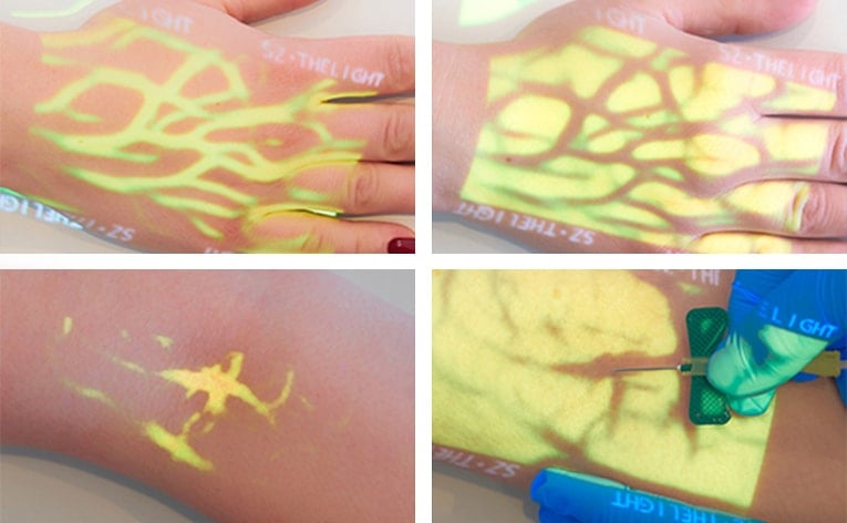 This professional vein finder projects the winding course of the blood vessels on the patient’s skin and facilitates venipuncture in patients with complicated vein conditions.