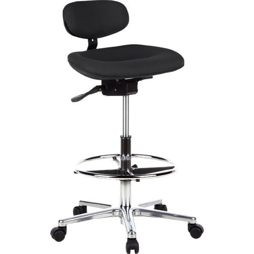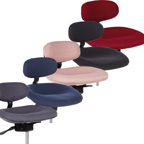 Due to its distinctive contoured seat and particularly thick padding, the ergonomic swivel stool provides for relaxed, comfortable sitting. The deep backrest supports the lumbar spine, thus helping to prevent backache. Both the seat height and the height of the foot ring can be continuously adjusted.