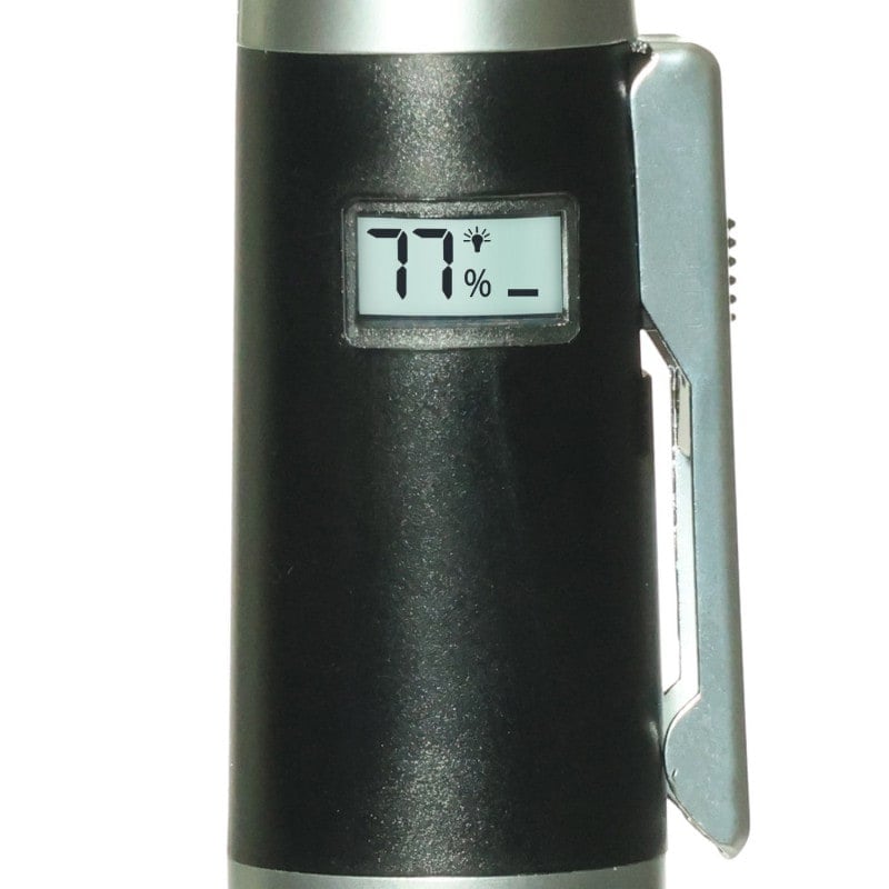 The LED also provides a warm light with 3,200 K for true-to-life colour rendering and has an impressive service life of up to 20,000 hours. The integrated LCD shows both the charge level and the current brightness setting. In addition, the otoscope features an insufflator port for pneumatic otoscopy allowing testing of ear drum mobility.