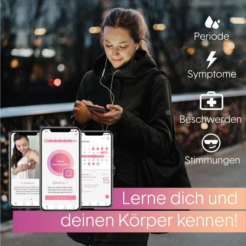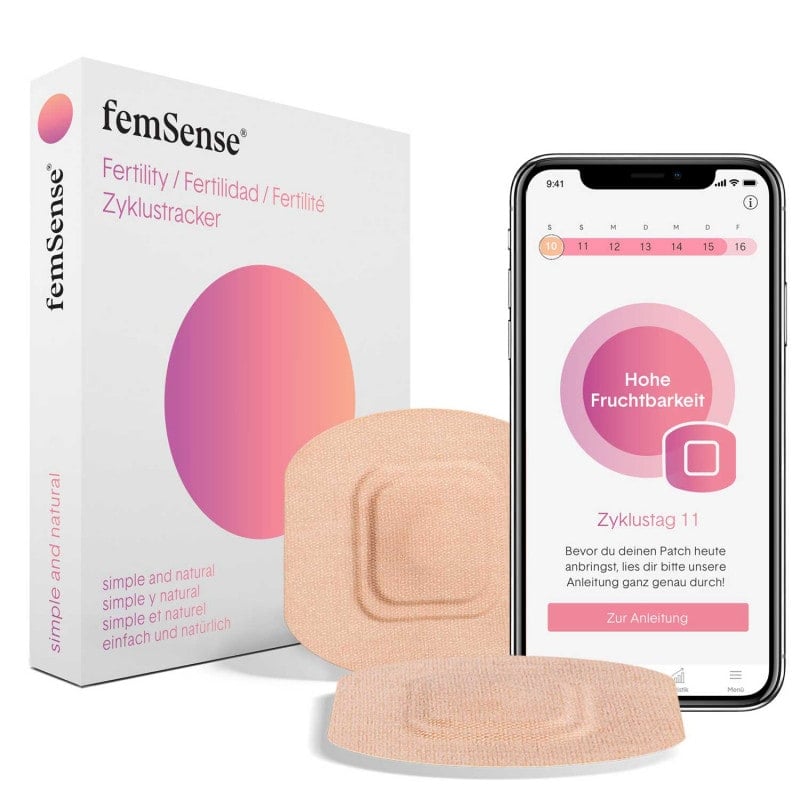 For the measurement, the adhesive patch is applied under the armpit. It remains there for 5-7 days and is used for continuous measurement and transmission of the body temperature to the appropriate femSense app within seconds. This creates a natural and permanent analysis of the fertility status and provides information about the time of ovulation. Therefore, femSense can be used to monitor the cycle and thus offers an alternative to hormonal contraception or to determine the fertile days if you are planning to conceive.