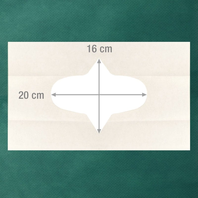 - High adhesive capacity prevents the fenestrated drape from sliding during surgery