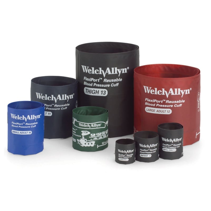The FlexiPort blood pressure cuffs from Welch Allyn differ from conventional blood pressure cuffs because of their innovative click system. The cuff can be attached to the tube just like with push buttons. This makes it possible to change the FlexiPort blood pressure cuff within a few seconds. The tube does not need to be replaced for this. The FlexiPort system is particularly suitable for medical practices and hospitals that have a high amount of different patient groups.