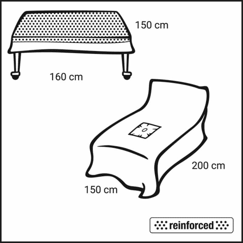 II | - 1 Table cover, reinforced, 150 x 190 cm - 1 Protect extremity drape with elastic cuff and Velcro fastener, 225 x 320 cm, fenestration 5 x 7 cm |