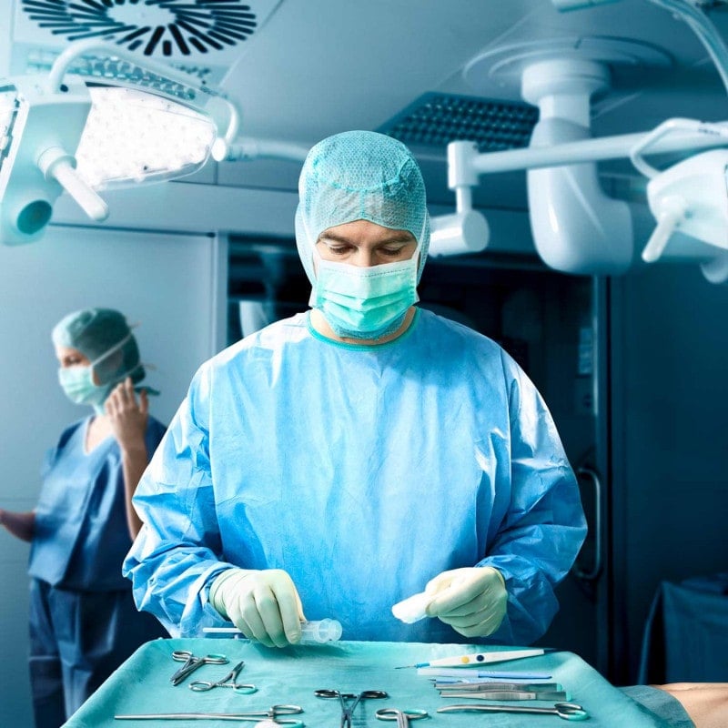 - Surgical gown according to DIN 13795:2011 + A1:2003