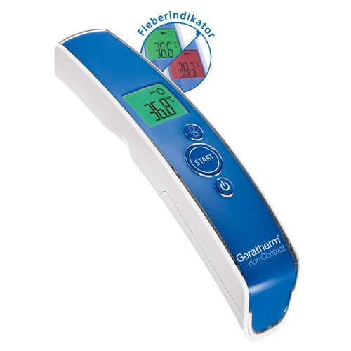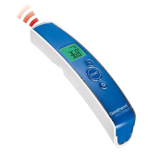 Geratherm non contact infrared thermometer for reliable and fast measurement of body temperature. For easy temperature measurement in adults, children and babies without direct skin contact to minimise the risk of infection transmission.