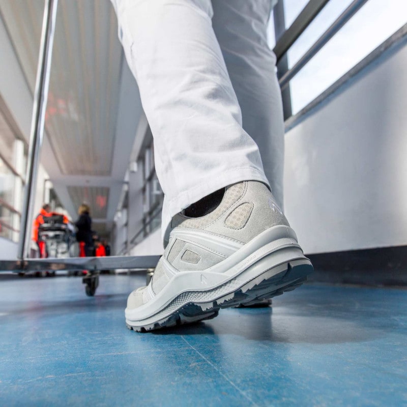 The Haix Black Eagle Air is a light, breathable shoe with a grey and white colour combination, that is ideal for daily use at the medical practice. Since the soles are non-marking, they don't leave visible traces on the floor, making them perfect for hospitals and medical practices.