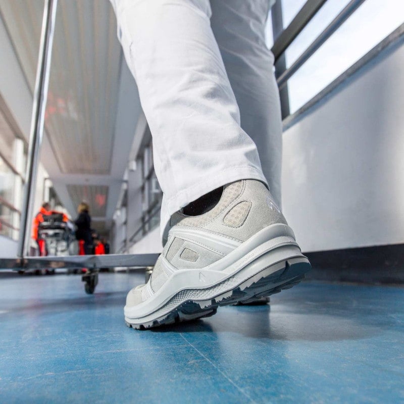 The Haix Black Eagle Air is a light, breathable shoe with a grey and white colour combination, that is ideal for daily use at the medical practice. Since the soles are non-marking, they don't leave visible traces on the floor, making them perfect for hospitals and medical practices.