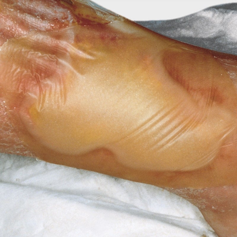 - Contains hydroactive colloids which absorbs excess contaminated exudate to form a gel structure