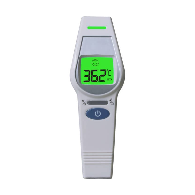 The infrared thermometer is used for touch-free and hygienic body temperature measurement on the forehead. Additionally, the infrared thermometer can measure the temperature of surfaces, the ambient temperature, as well as baby food and bath water. The measurement can be read on the large LCD display within 3 seconds.