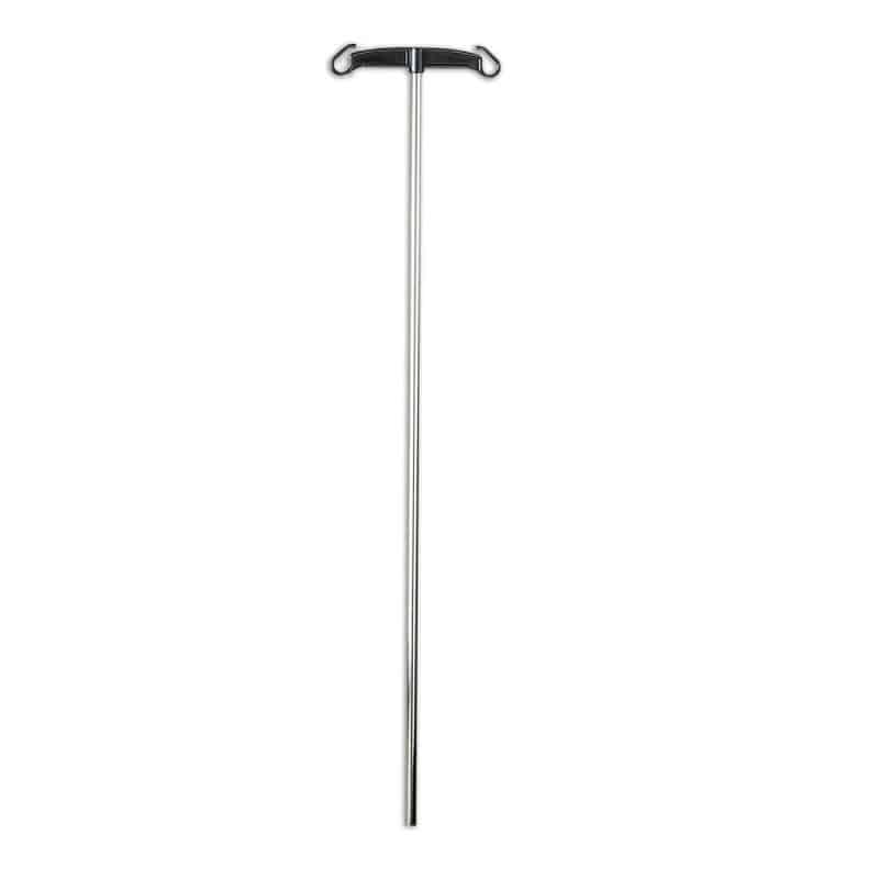 This infusion stand is intended to be attached to CARINA blood collection chairs (item nos. 133855 and 133854). The infusion stand is made from stainless medical-grade steel and has two metal hooks to attach the infusion solution.