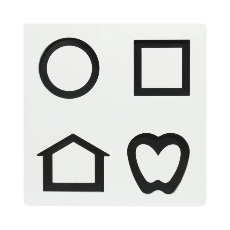 The puzzle can be used on both sides. While the front is designed in bright colours, the back is black and white. The individual symbols are 5.1 x 5.1 cm in size and are therefore also suitable for examination of children.