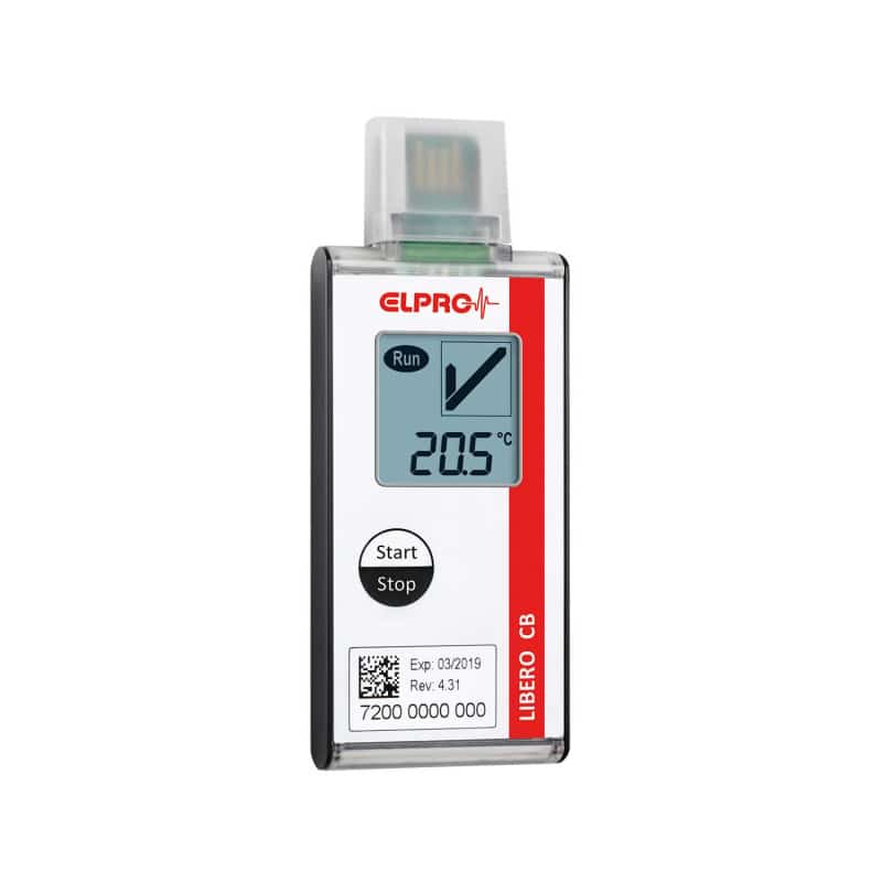 The LIBERO CB is a single-use PDF logger with an integrated sensor for cold chain monitoring. It offers two alarm threshholds and a programmable alarm delay to ensure temperature compliance. Alarm functions include a MKT alarm and a warning for exceeding the permitted time duration.