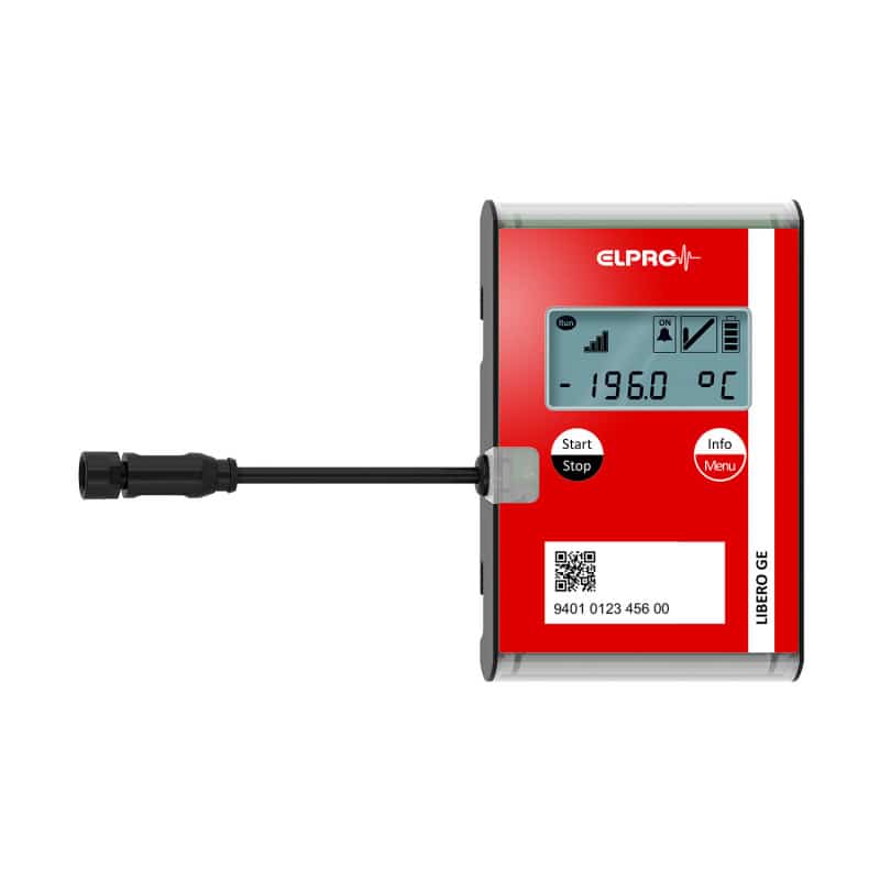 LIBERO GE from Elpro is a versatile, reusable real-time data logger specifically designed for monitoring temperature-sensitive medical goods. It is ideal for the transport and storage of frozen and dry ice products. With its highly precise sensors and the optional external Pt100 probe, the LIBERO GE allows continuous temperature control over a wide range. The logger provides real-time notifications and is fully compatible with international transport regulations, facilitating its use for air freight and other transport methods. Data is automatically uploaded to the elproCLOUD and can be accessed at any time.