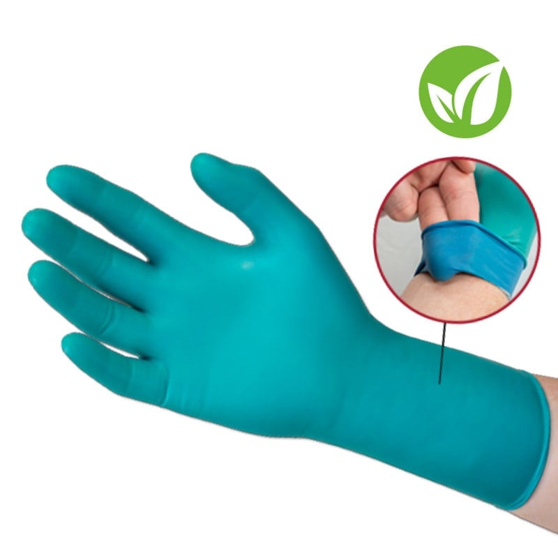 The textured fingertips of this ergonomic glove provide superior grip, while the extra-soft material and anatomical fit ensure unparalleled comfort. With a low AQL value of 0.65 for micro-holes and extended cuffs, this glove delivers reliable protection against hazardous substances.