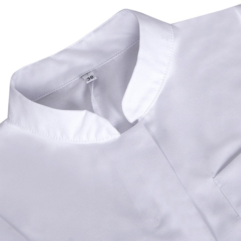 The white and fitted Mirach women's coat from Edelweiss can be closed with the help of nine concealed press studs and offers plenty of storage space thanks to the 3 patch pockets. It is made of a cotton-polyester blend fabric that resembles a light satin fabric with an excellent feel and a beautiful drape. It is washable at 85 °C and is perfect for work environments where there is a higher base temperature.
