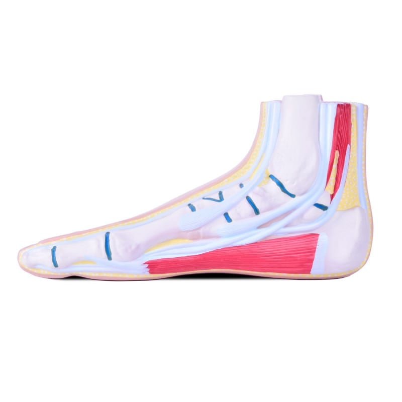 The model of foot malpositions by HeineScientific consists of 3 individual models, which show the structure of a healthy foot, a hollow foot and a flat foot. In addition to the bones, the muscles and tendons, the skin and the fatty tissue are also visible on the models.