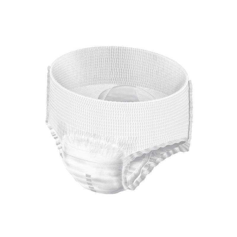 Made of breathable, textile-like material, the pants have an elastic leg cuff and an absorbent core inside that prevents leakage. As the disposable pants are particularly soft and breathable, a pleasant skin climate is maintained. After use, the trousers can be torn open at the side seam for a quick change and disposed of.