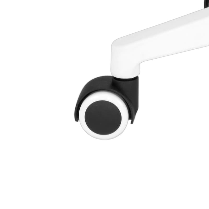 The office chair with universal castors is optionally available with a blue, lime green, light grey or black mesh back and matching white or black base.