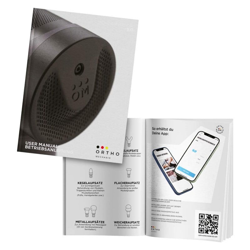 The professional OrthoGun 3.0 massage gun from Orthomechanik is equipped with a brushless 160 watt motor that is highly efficient and durable. In addition, the state-of-the-art percussive therapy tool has particularly quiet operation and an extensive range of applications. For example, the gun can be used to relieve muscle tension and stiffness, to accelerate the regeneration process or to reduce the risk of injury or muscle soreness. The set includes 7 interchangeable head attachments for different areas of the body and for different types of pain.