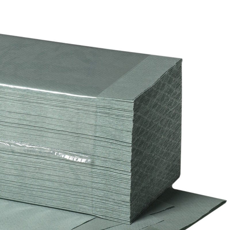 These paper towels are made of 100 % recycled material. The recycled, pleated paper towels with zig zag folding are available in green or natural.