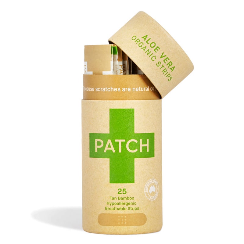The PATCH bamboo plasters with Aloe Vera are ideal for treating light burns, blisters and scrapes. The wound cushion is enriched with Aloe Vera extract, which improves wound healing and provides a calming effect. These plasters are made of organic bamboo fibres, are hypoallergenic, free of plastic and chemicals and do not container latex, silicone, parabens or sulfates. This makes them excellent for patients with sensitive skin or plaster allergies.