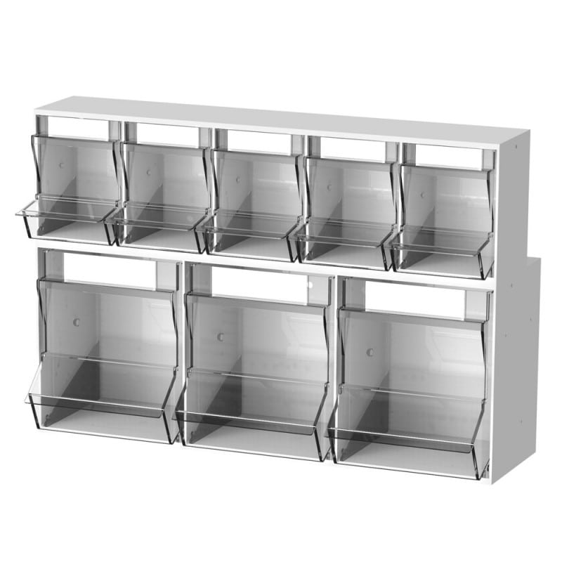 This syringe and needle dispenser has a tried and tested design, is equipped with containers that employ the first-in/first-out principle (filled at the top, removed from the bottom), and has dust protection in accordance with DIN 58953. The PicBox Plus syringe and needle dispenser is suitable for the neat storage of injection accessories, such as disposable syringes, disposable needles, Luer plugs and plasters.