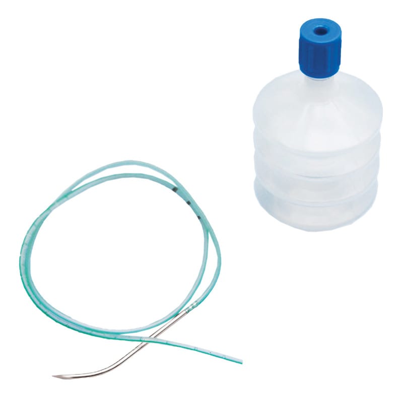 The sterile Redon mini sets from Dahlhausen consist of a mini bellows and a Redon drain with guide needle. The practical complete set is available in different variants.