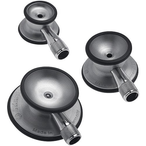 The tristar® stethoscope from Riester is characterised in particular by the three dual-head chest pieces in different sizes included in the scope of delivery. Thanks to a practical quick-change connector, these can be changed quickly and according to need. The high-quality stethoscope delivers excellent acoustic performance in all application areas and is used for auscultation in all frequency ranges. Each aluminium chest piece supplied has a special diaphragm and a bell.