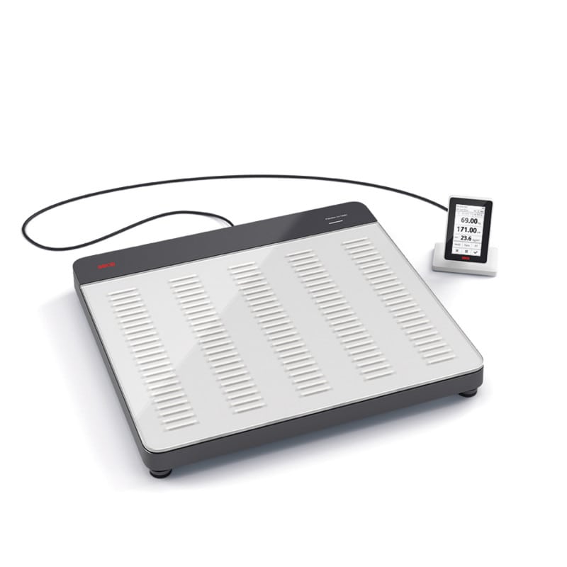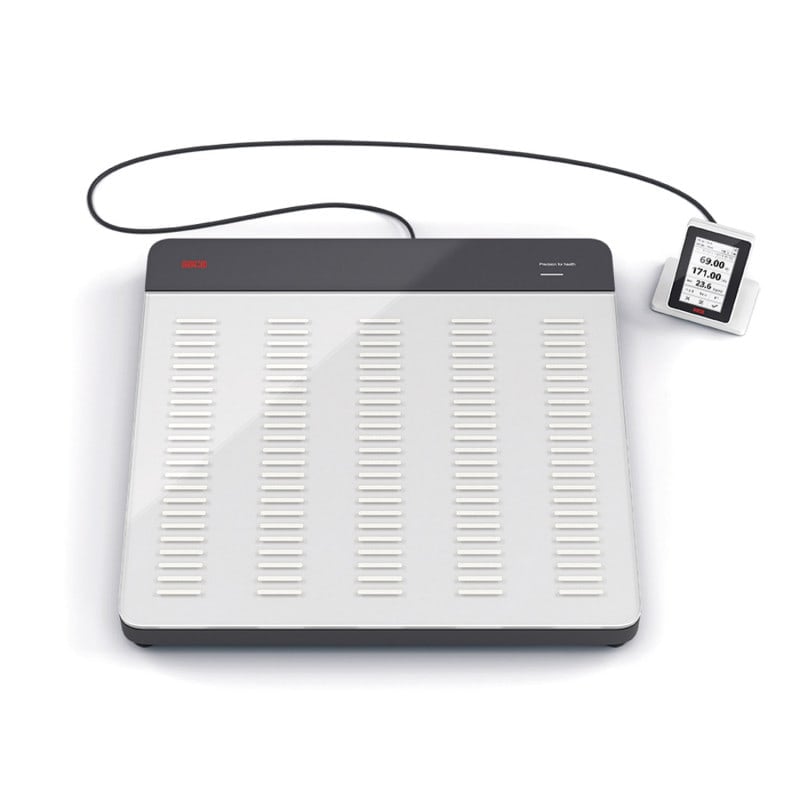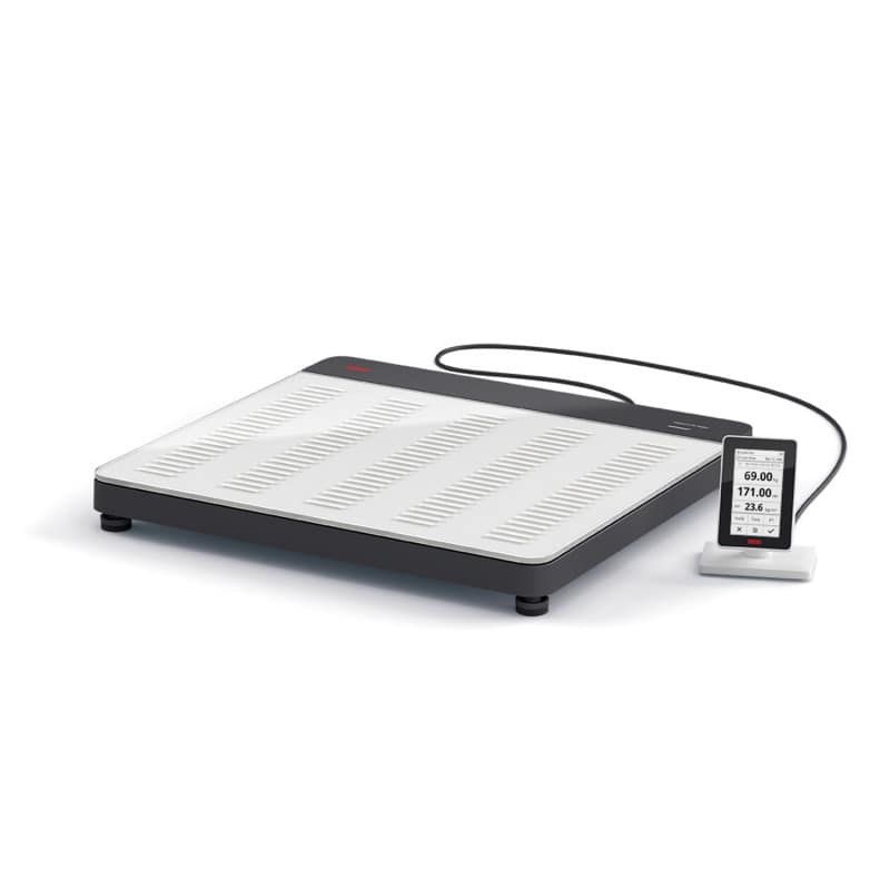 The large platform made of tested seca Bearclaw Glass® is particularly easy to clean and disinfect and is therefore also suitable for hygiene-sensitive healthcare areas. The low, non-slip platform makes it easy to step on, even for patients with restricted movement or particularly heavy patients.