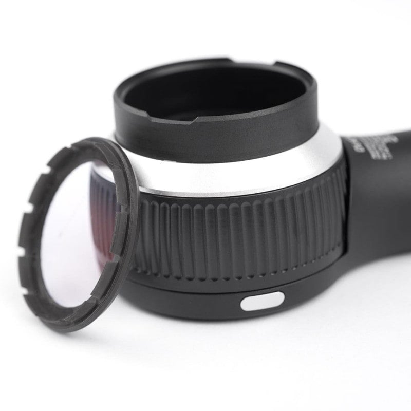 This snap-on front panel can be used with every DermLite DL4 that has been bought after May 2018. The non-magnetic front panel is simply snapped on the spacer of the DermLite. The material of the front panel is made of sturdy polymer and can come into contact with common water- and alcohol-based immersion liquids.
