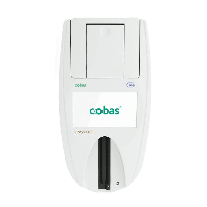 The Urisys 1100 urine analyser from Roche is a reflection photometer for the evaluation of Combur Test UX urine test strips. The diagnostic device has an integrated thermal printer and can perform up to 50 measurements per hour.